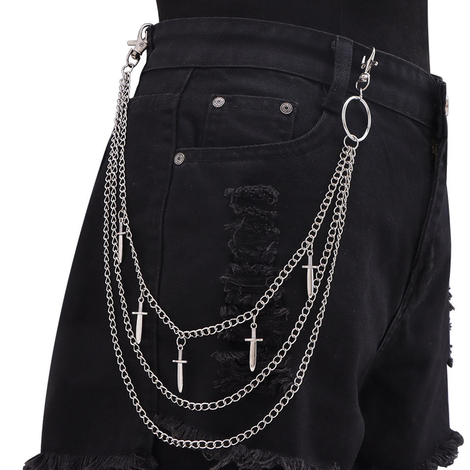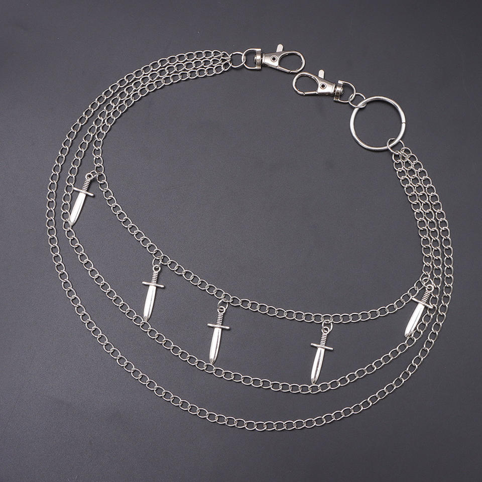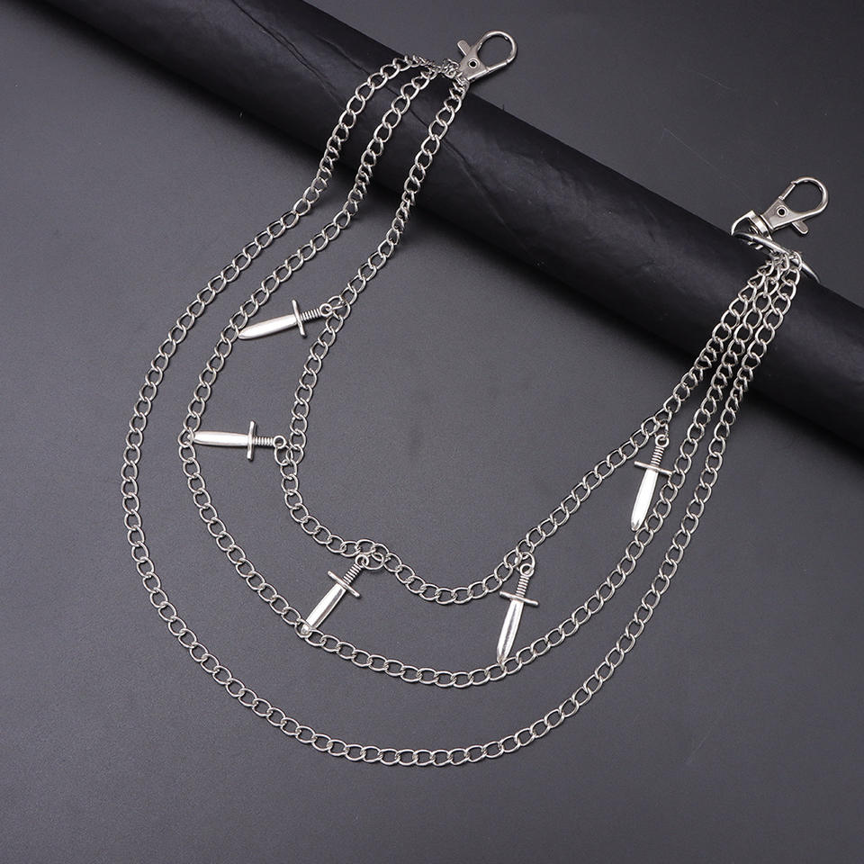 จี้ดาบเงินทิเบตหลายชั้นพร้อมสายคาดเอวสำหรับกางเกงยีนส์ เครื่องประดับแฟชั่นลำลอง