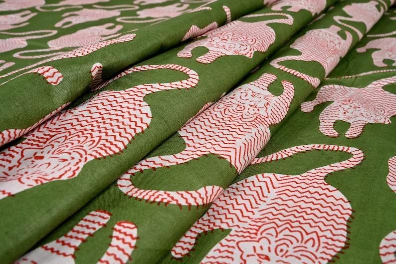 ผ้าพิมพ์ลายเสือทิเบต พิมพ์ลายด้วยมือ ขายเป็นหลา สำหรับงานเย็บผ้า งานฝีมือ ตัดเย็บเสื้อผ้า วัสดุทำชุดกิโมโน ผ้าทำชุดคาฟตัน