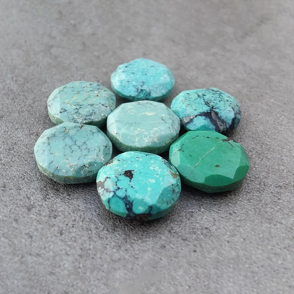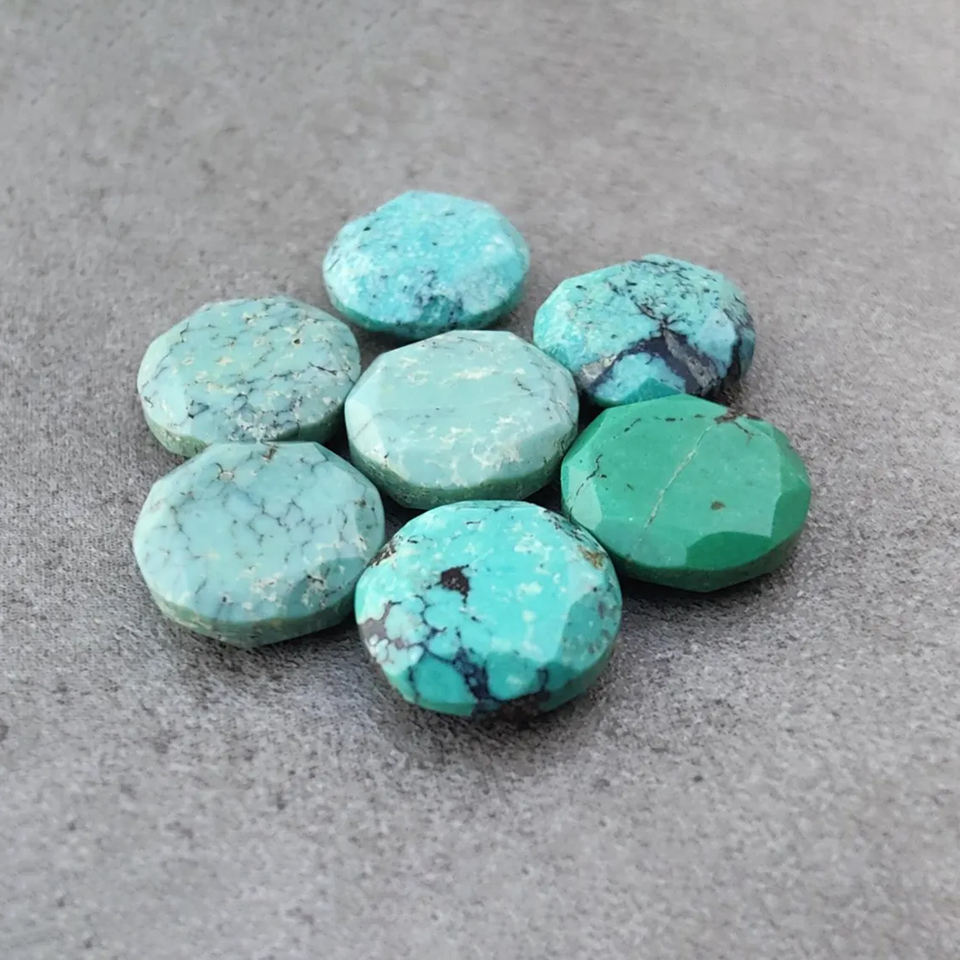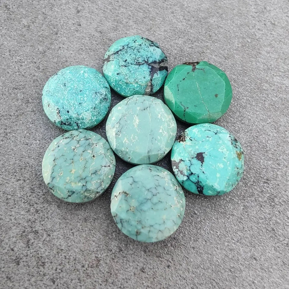 พลอยเทอร์ควอยซ์ทิเบตทรงกลมเจียระไนแบบคาโบชอง เกรด AAA สำหรับทำเครื่องประดับ มีขนาดให้เลือกตามสั่ง
