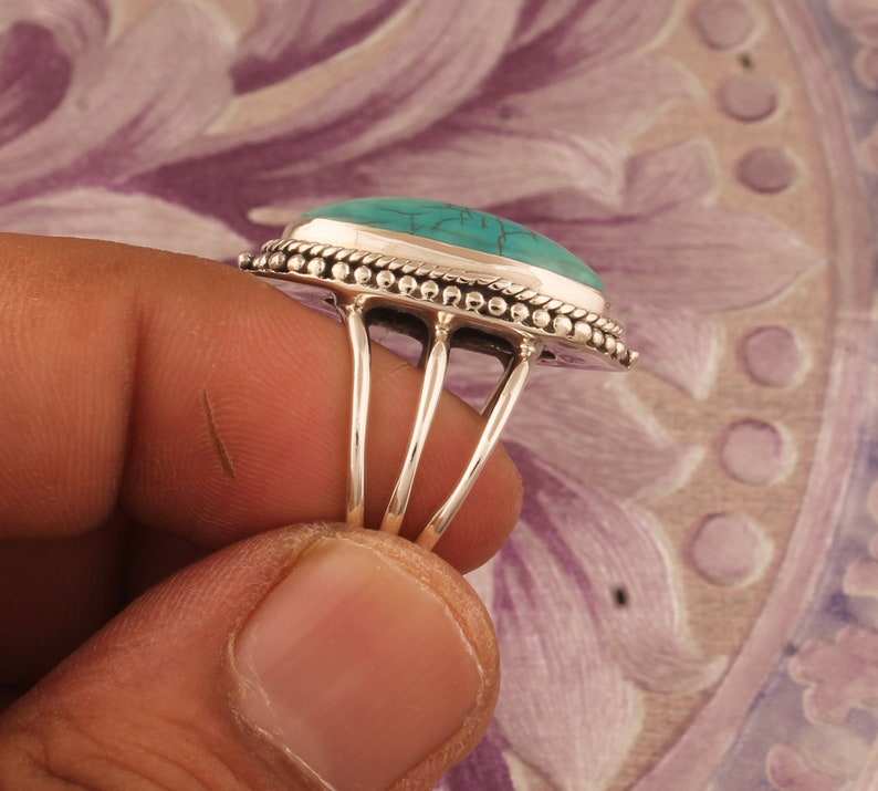 แหวนเงินสเตอร์ลิง925รูปวงรีสีเทอร์ควอยส์ทิเบตทำด้วยมือสามชั้นไอเดียของขวัญวันวาเลนไทน์