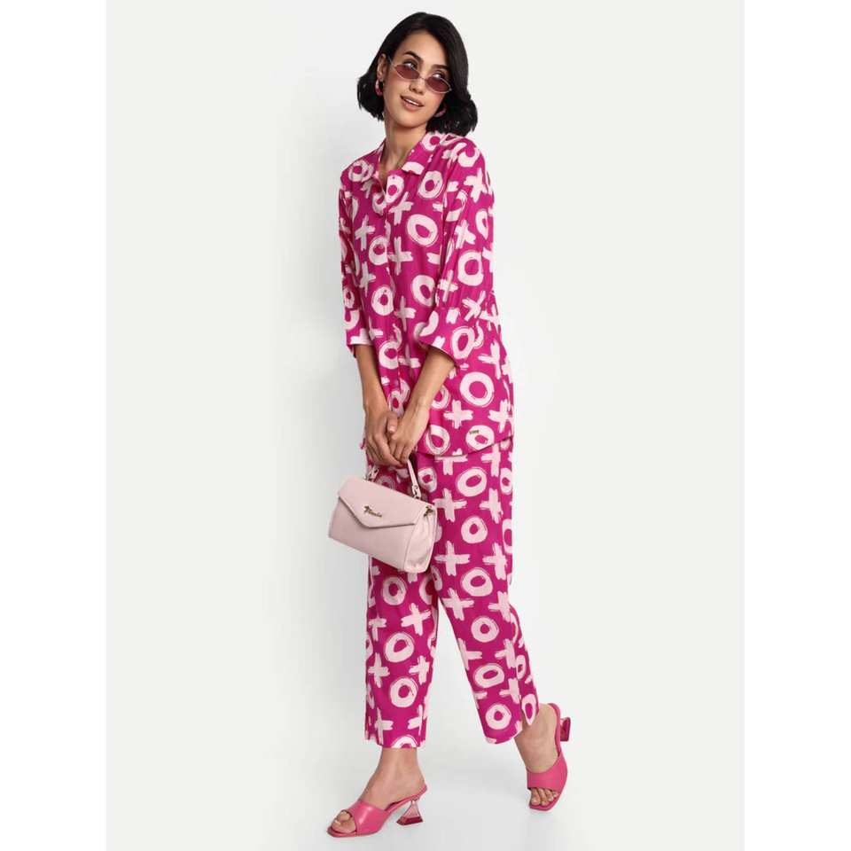 Tictac ชุดเสื้อผ้าลำลองสองชิ้นสำหรับผู้หญิง, พิมพ์ลายดอกไม้สีชมพูสไตล์ตะวันตก100% ผ้าฝ้าย