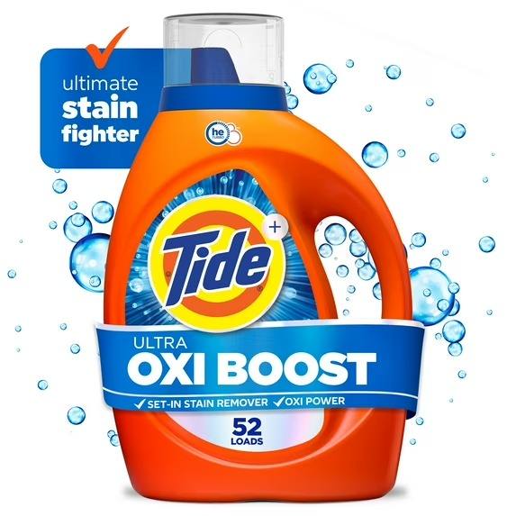 Tide Ultra Oxi Boost Liquid Laundry Detergent, Advanced Stain Remover, 73 fl oz, 52 Loads