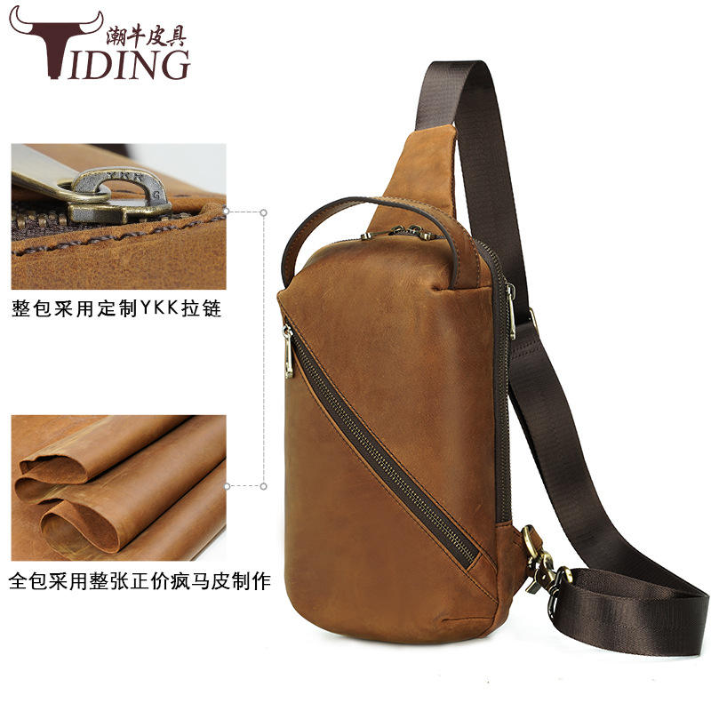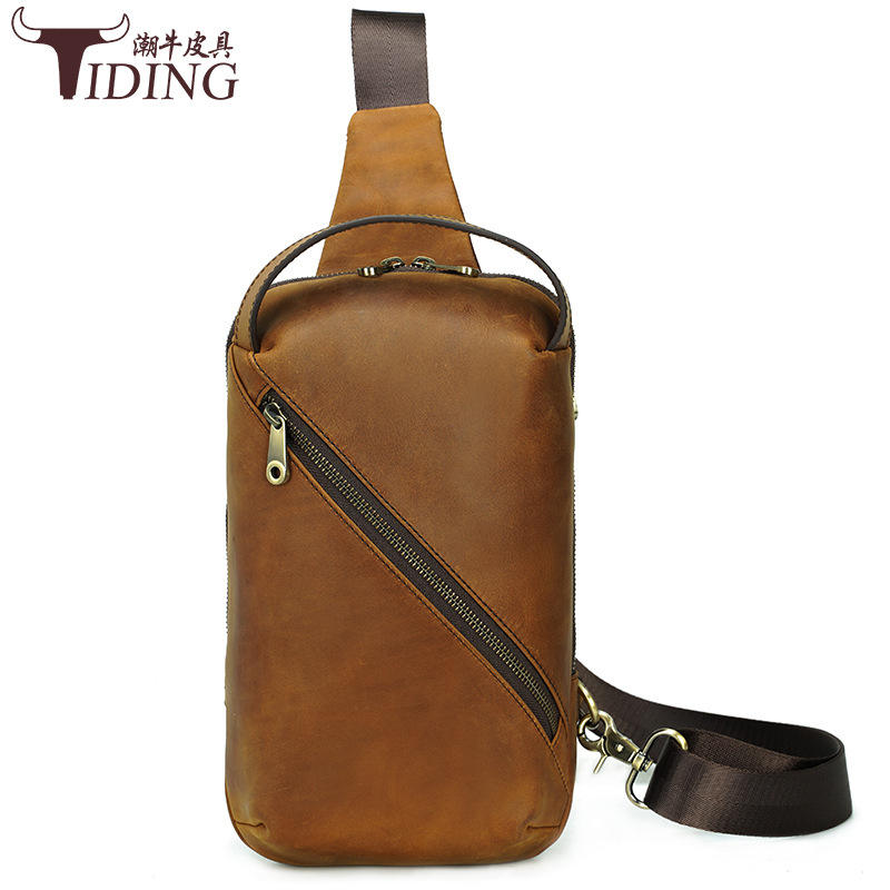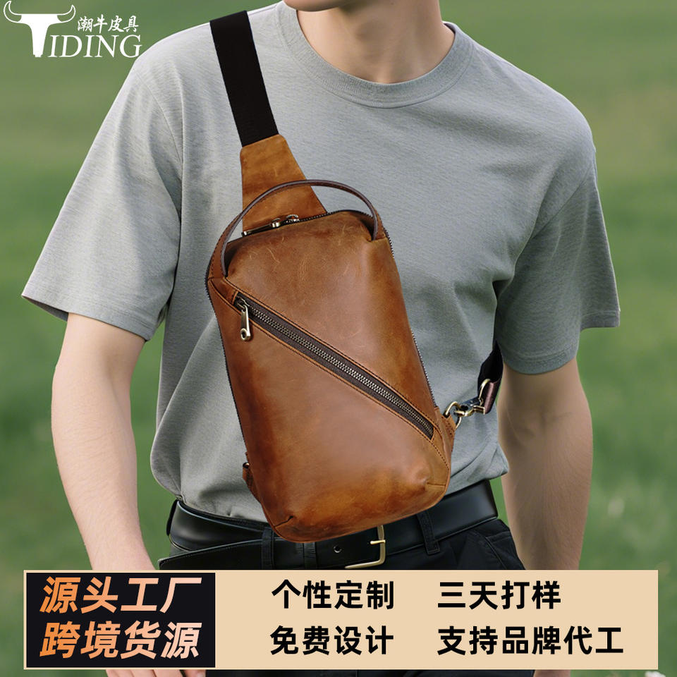 กระเป๋าคาดหน้าอกหนังแท้สำหรับผู้ชาย ขนาด 9.7 นิ้ว เหมาะสำหรับใช้ในชีวิตประจำวัน