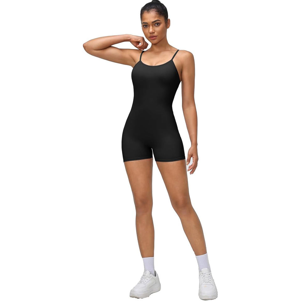 จั๊มสูทโยคะผู้หญิงแบบผูกหลัง ผ้าไนลอนผสมสแปนเด็กซ์ บอดี้สูทแบบชิ้นเดียว แขนกุด ความยาวเต็มตัว สายปรับได้ เปิดหลัง