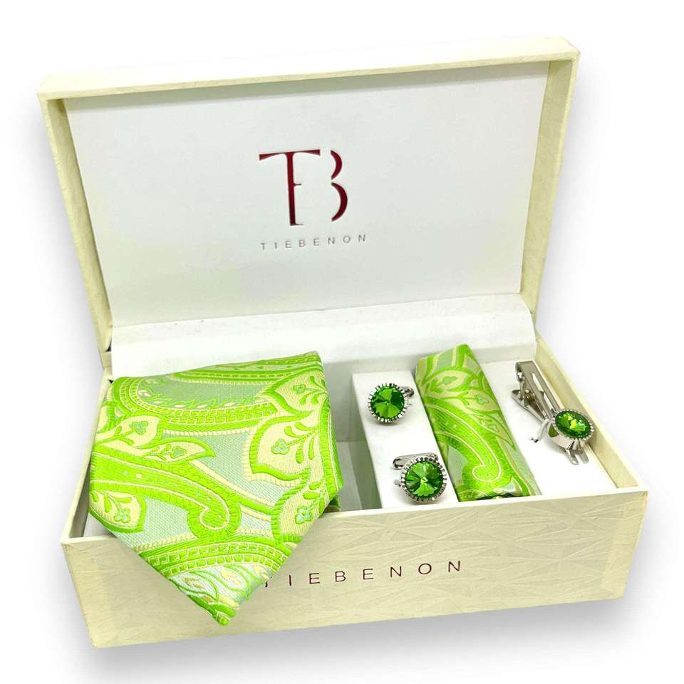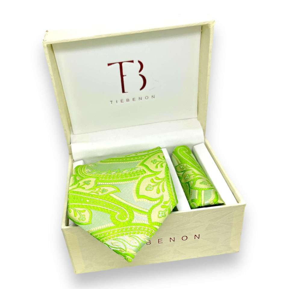 เนคไทผ้าไหมลายเพสลีย์สีเขียวนีออนสุดหรู ขนาดใหญ่ ดีไซน์สำหรับผู้ชาย