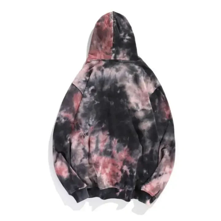 เสื้อฮู้ดดี้ลายมัดย้อมฟอกสี สำหรับผู้หญิงและผู้ชาย ผ้าฝ้าย 100% ซักแล้ว ลายมัดย้อม แบบสวม รักษ์โลก กันน้ำ สไตล์ไฮสตรีท สำหรับฤดูหนาว