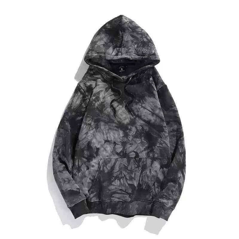 เสื้อฮู้ดผ้าฟลีซลายมัดย้อม อุ่นสบาย ใส่ได้ทั้งชายและหญิง สไตล์ไฮสตรีท ไซส์ใหญ่ ผู้ชายลำลอง วินเทจ