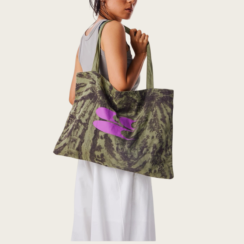 กระเป๋าเดินทางน้ำหนักเบาแบบมัดย้อม ความจุขนาดใหญ่ สายสะพายไหล่กว้าง กระเป๋าโท้ท สไตล์ศิลปะ กระเป๋าสะพายไหล่สำหรับพกพาในชีวิตประจำวัน