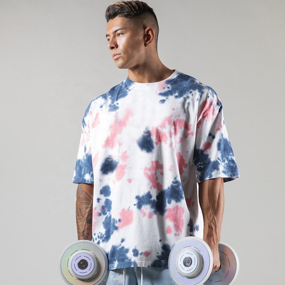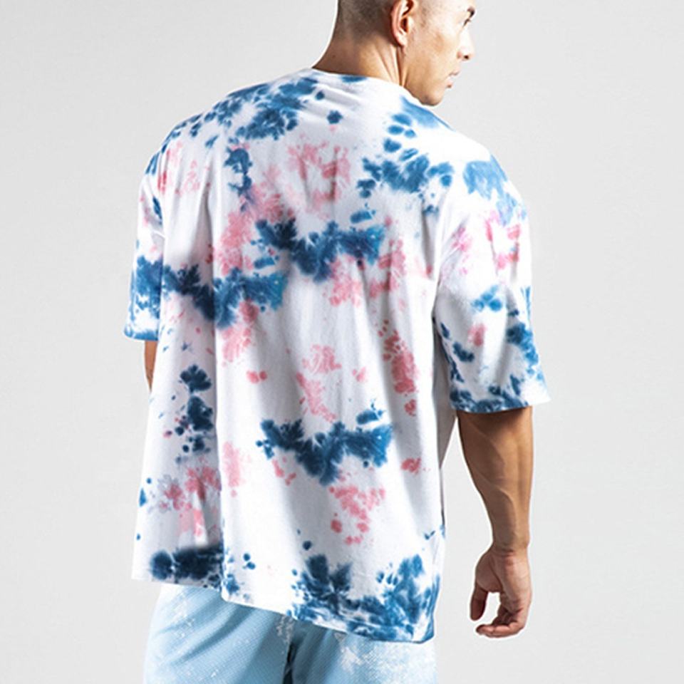 เสื้อยืดแขนสั้นพิมพ์ลายมัดย้อมสำหรับผู้ชายแฟชั่นฤดูร้อนผ้าคอตตอนแท้ระบายอากาศได้ใส่สบายดีไซน์ว่างเปล่า