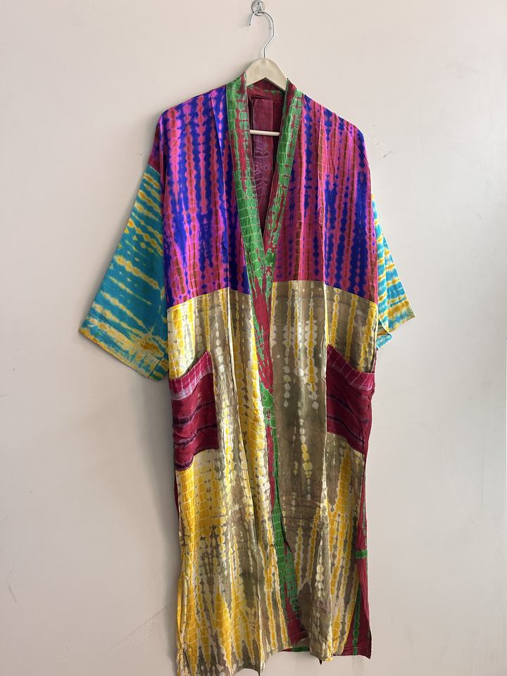 ชุดคลุมกิโมโนผ้าไหมย้อมสีแบบไทได สำหรับฤดูร้อน งานแฮนด์เมด สีสันสดใส ชุดเดรสหรูหรา