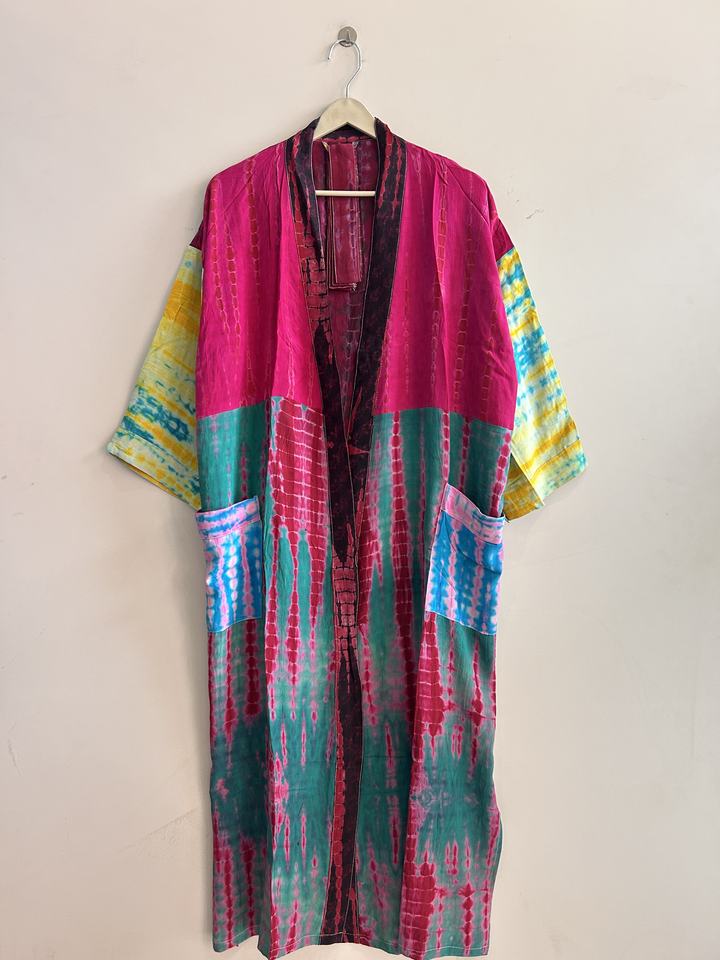 ชุดคลุมกิโมโนผ้าไหมย้อมสีแบบไทได สำหรับฤดูร้อน งานแฮนด์เมด สีสันสดใส ชุดเดรสหรูหรา