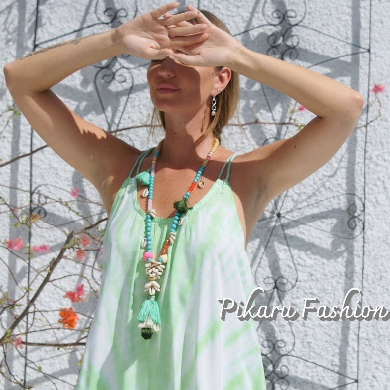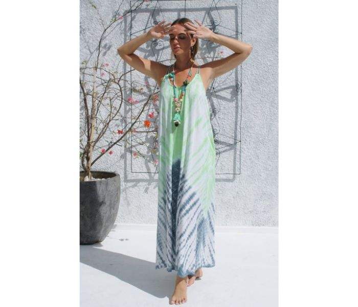 เดรสแม็กซี่แขนกุดมัดย้อมสำหรับวันหยุดฤดูร้อนชุดเดรสแม็กซี่คอกลมแขนกุดสำหรับวันหยุดฤดูร้อน