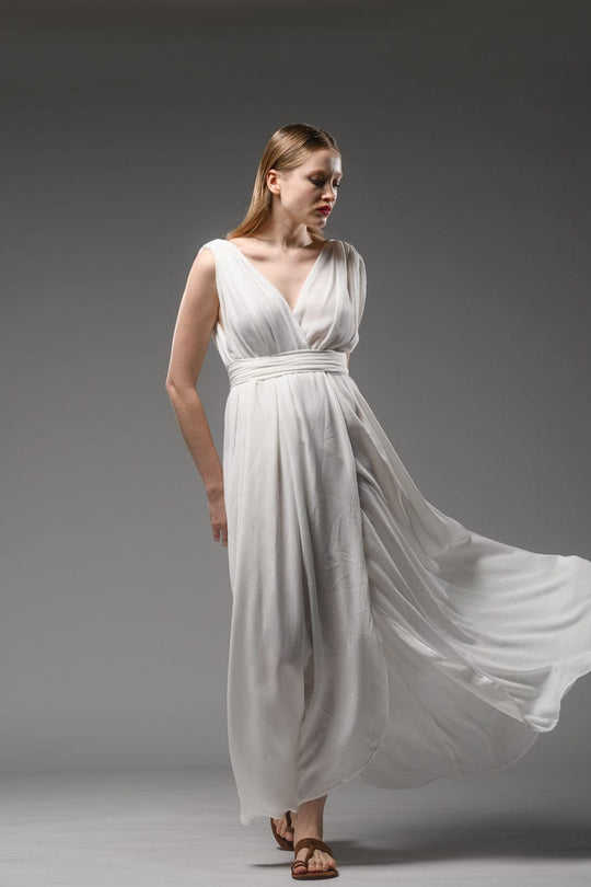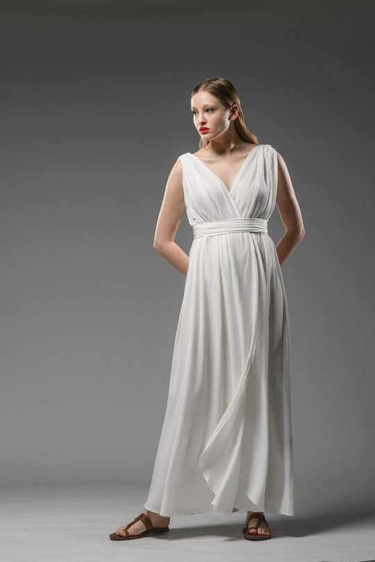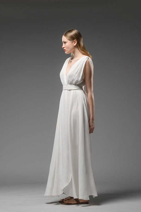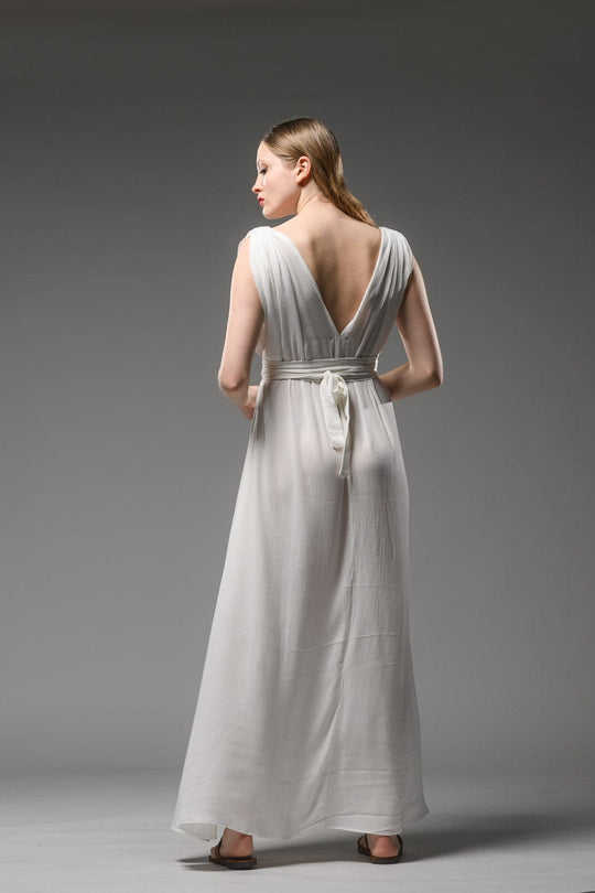 Tie Dye ชุดเดรสแม็กซี่ยาวคอวีงานทำมือแขนกุดสีขาวแขนกุดสไตล์เซ็กซี่2025ฤดูร้อน