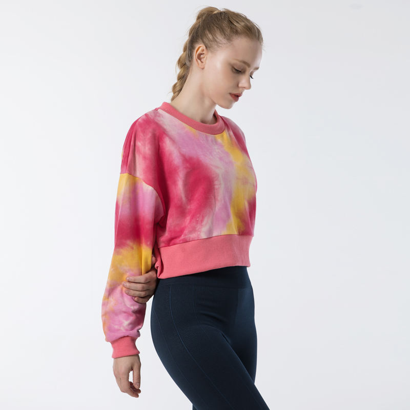 เสื้อกีฬาผู้หญิงมัดย้อม,เสื้อฟิตเนสทรงหลวมใส่สบายสำหรับวิ่ง