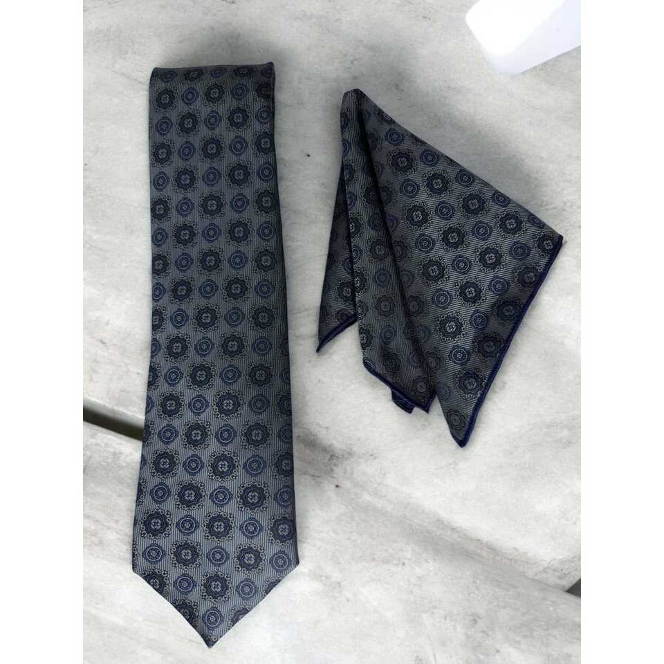 TieBenon Gray Tie with Pocket Square – Premium Microfiber