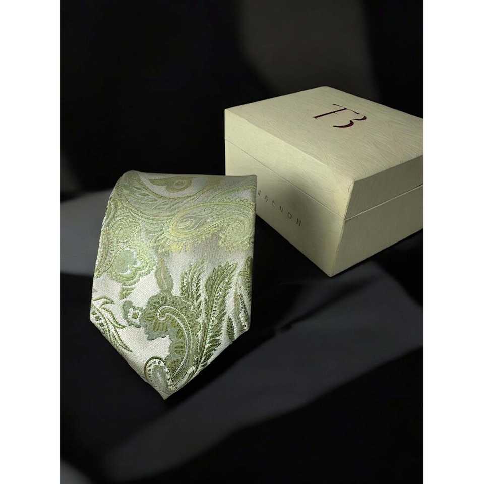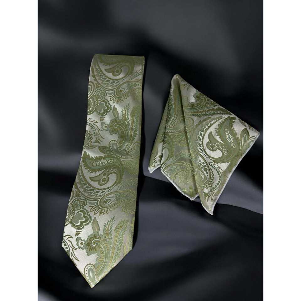 เนคไทลาย Paisley ไมโครไฟเบอร์แบบพรีเมี่ยมพร้อมกระเป๋าใส่ชาเขียวสี่เหลี่ยมสำหรับผู้ชาย2500กรัม