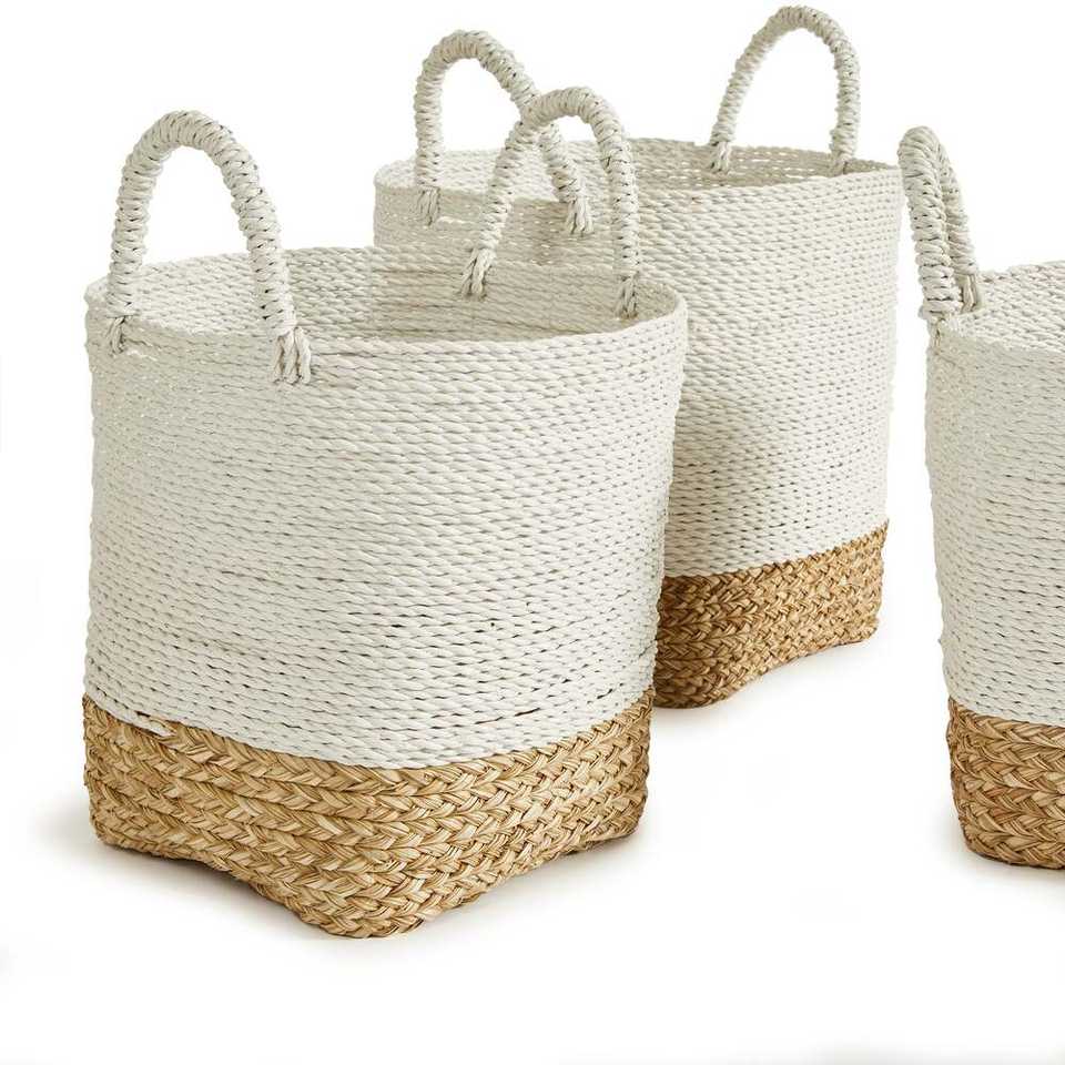 ตะกร้าช้อปปิ้งและเก็บของธรรมชาติชุด3ชิ้นพร้อมที่จับ