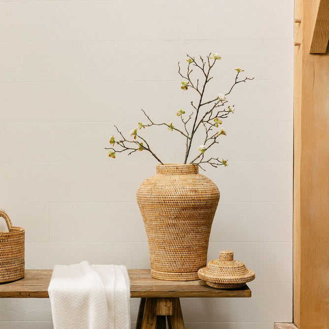 แจกันหวายทันสมัยพร้อมฝาปิดจาก TienPhong Wholesale - งานสานด้วยมือปี 2025 ของตกแต่งธรรมชาติสำหรับบ้านสมัยใหม่และของขวัญขึ้นบ้านใหม่