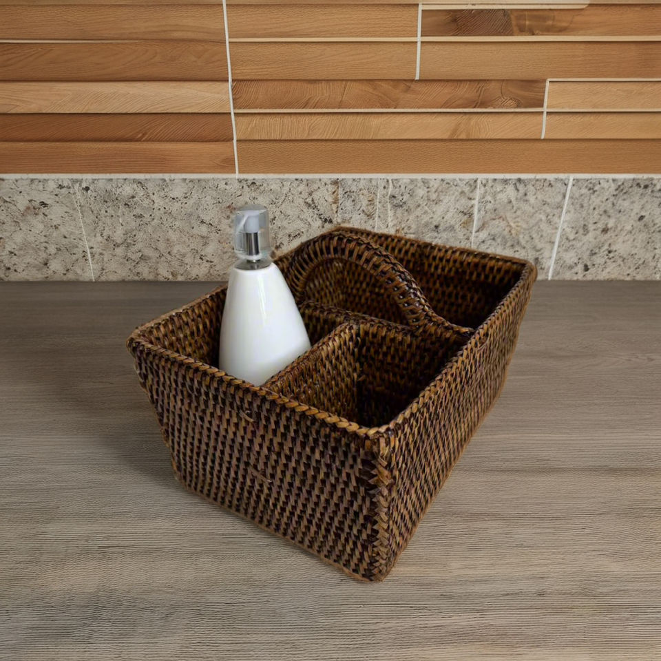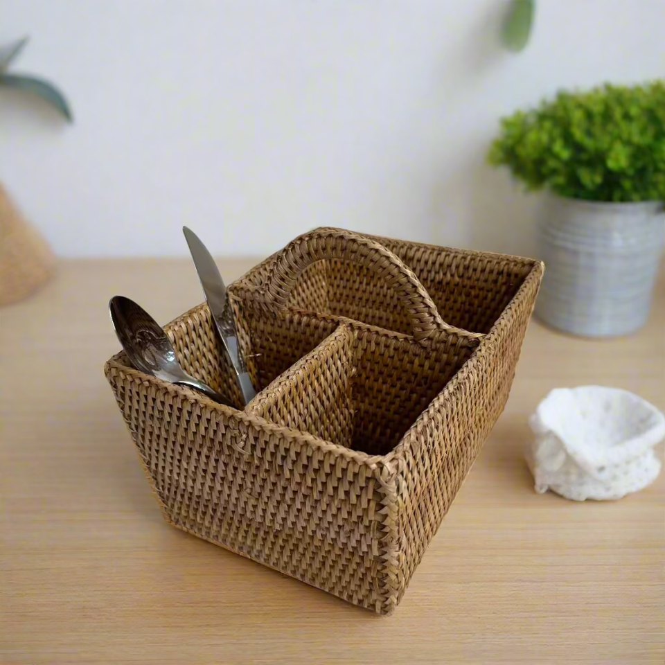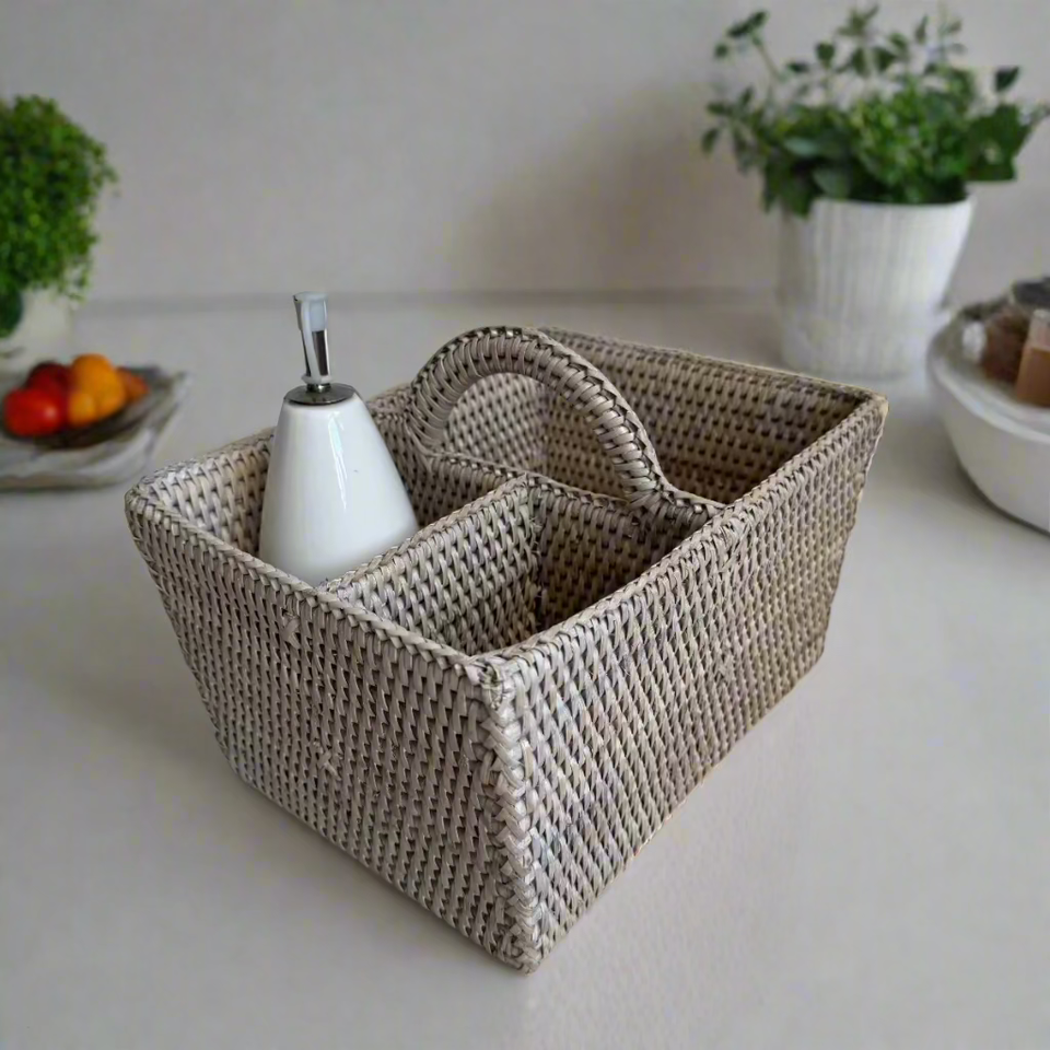 Tienphong ที่ใส่เครื่องปรุงอาหารแบบ3ช่องทำจากหวายมีที่จับสำหรับเก็บอาหารและห้องครัว