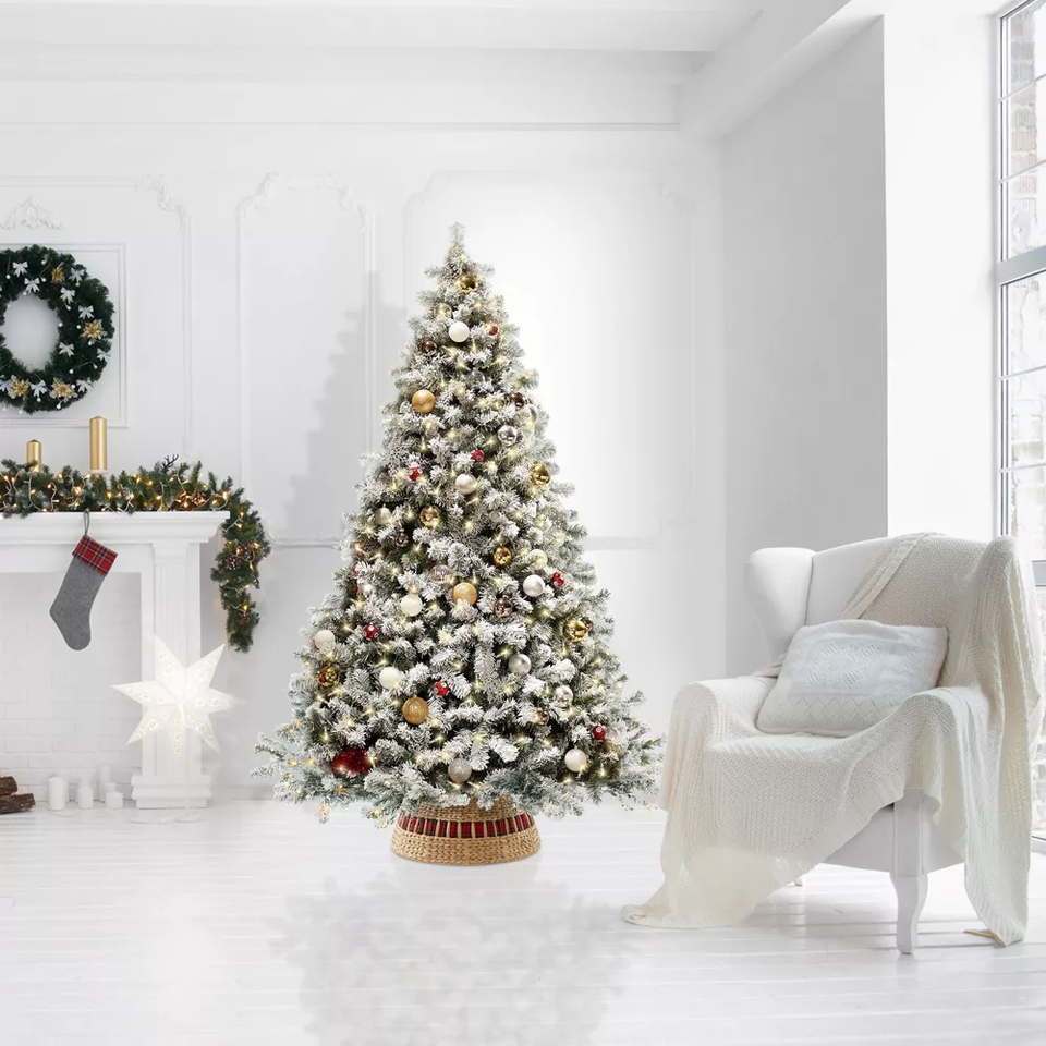 Tienphong ปลอกคอต้นคริสต์มาสทอทรงกลมปลอกฐานต้นไม้ผักตบชวาสานด้วยสายตัดออก