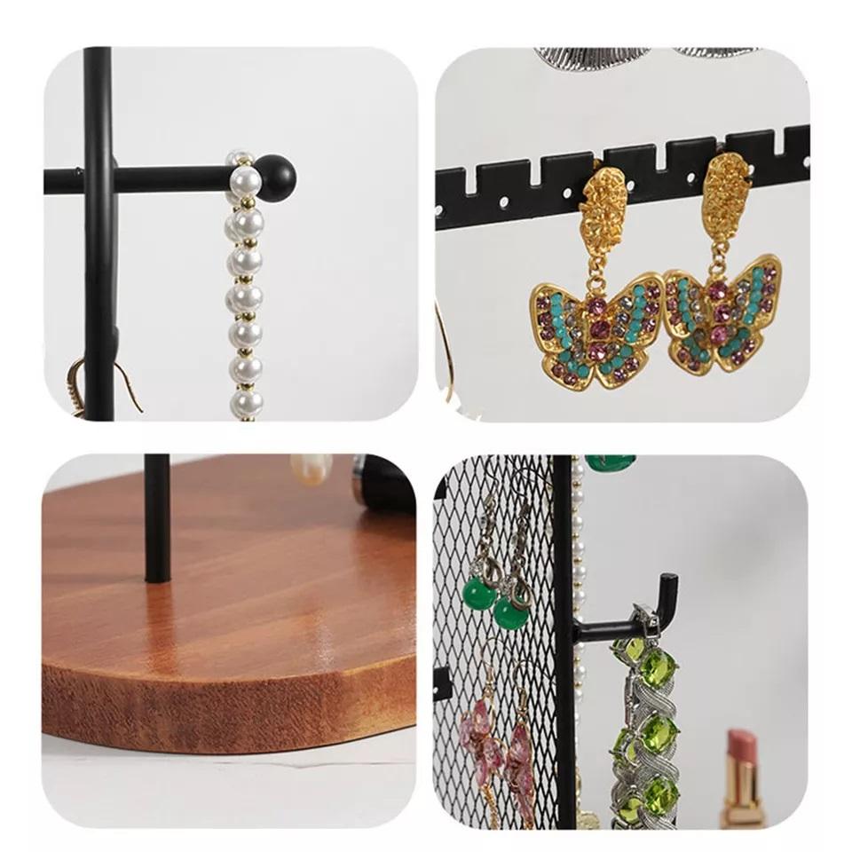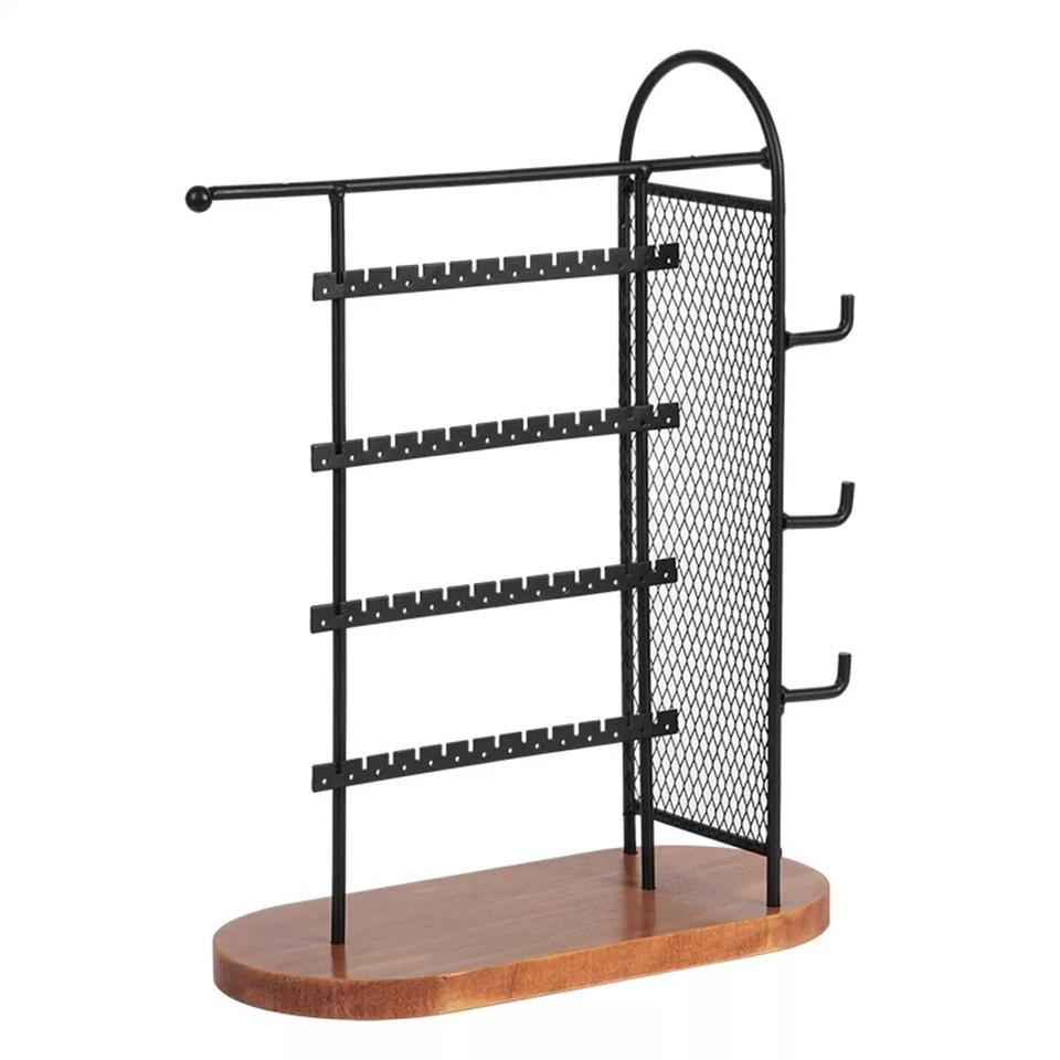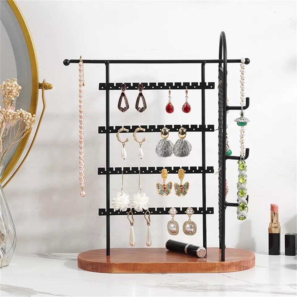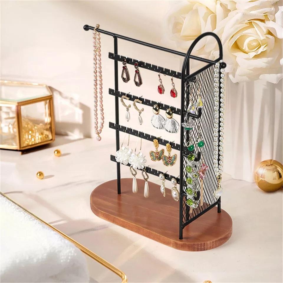 ชั้นสีดำโลหะต่างหูจัดเครื่องประดับยืนแสดงสำหรับแขวนต่างหู