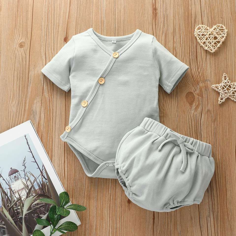 ชุดรอมเปอร์เด็กอ่อนสำหรับฤดูร้อน ผ้าฝ้ายลายเรียบและลายทาง สำหรับเด็กผู้ชายและเด็กผู้หญิง ขายดี