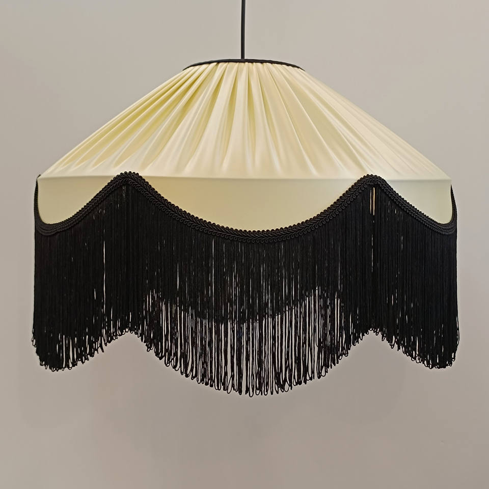 Tiffany lemon cream silky wavy handmade lamp shade, pendant light.