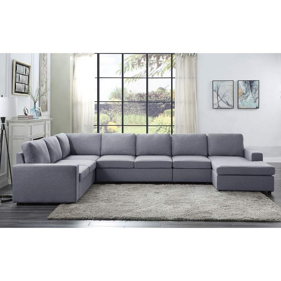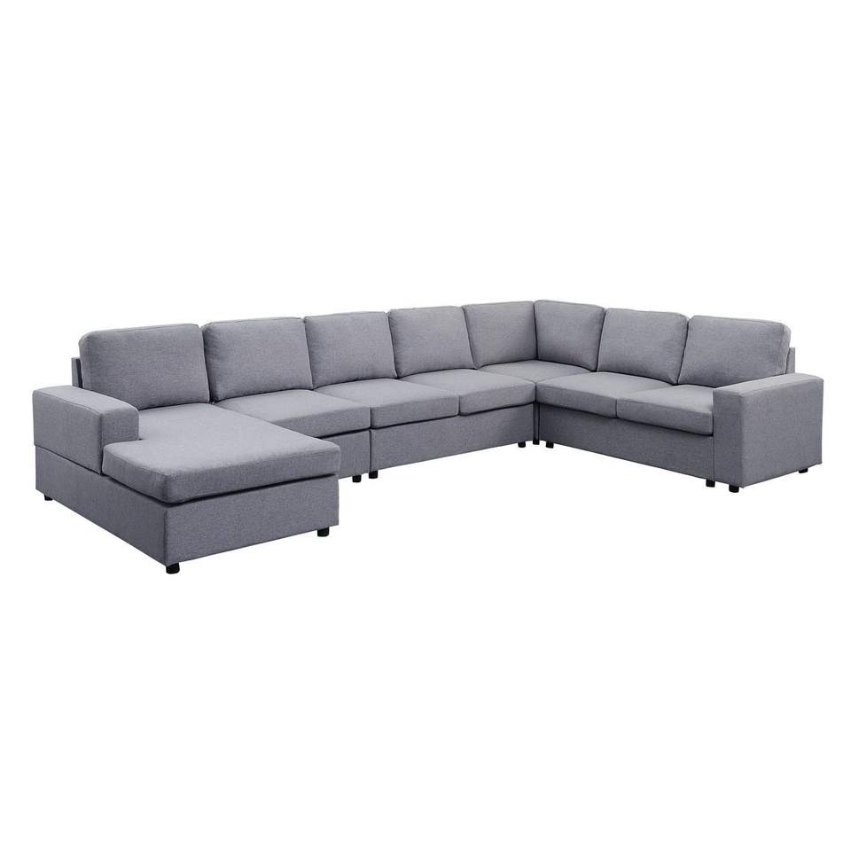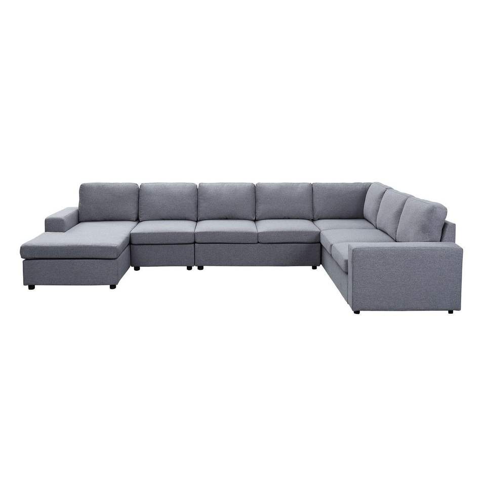 Tifton 147 Light Gray Linen 7 Seat Reversible Modular Sectional Sofa Chaise for Living Room