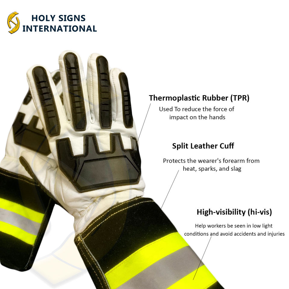 TIG MiG ถุงมือเชื่อมกับ TPR กระแทกกับ Neoprene ปาล์มความร้อนและการตัด Thinsulate เรียงรายไปด้วย Hi VIS ถุงมือหนังเม็ด