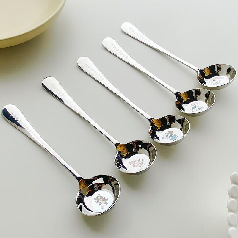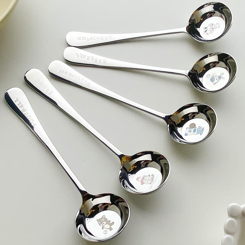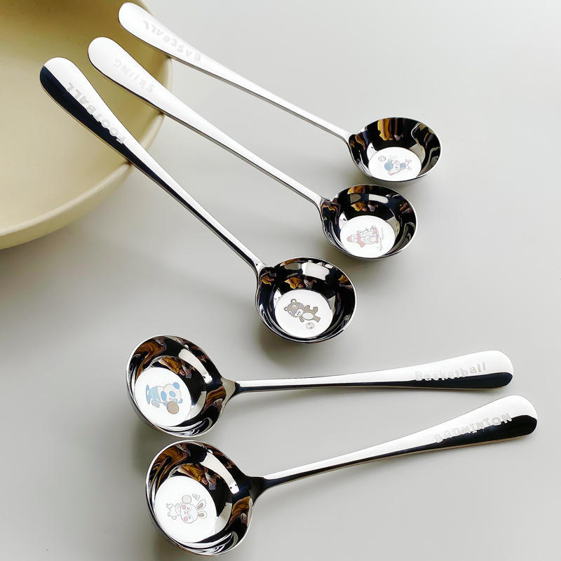 ช้อนสแตนเลส 316 ลายการ์ตูน ตรา Tiger Chef ด้ามยาว หัวกลม ฐานแบน สำหรับเด็ก ใช้กับซุปและหม้อไฟ