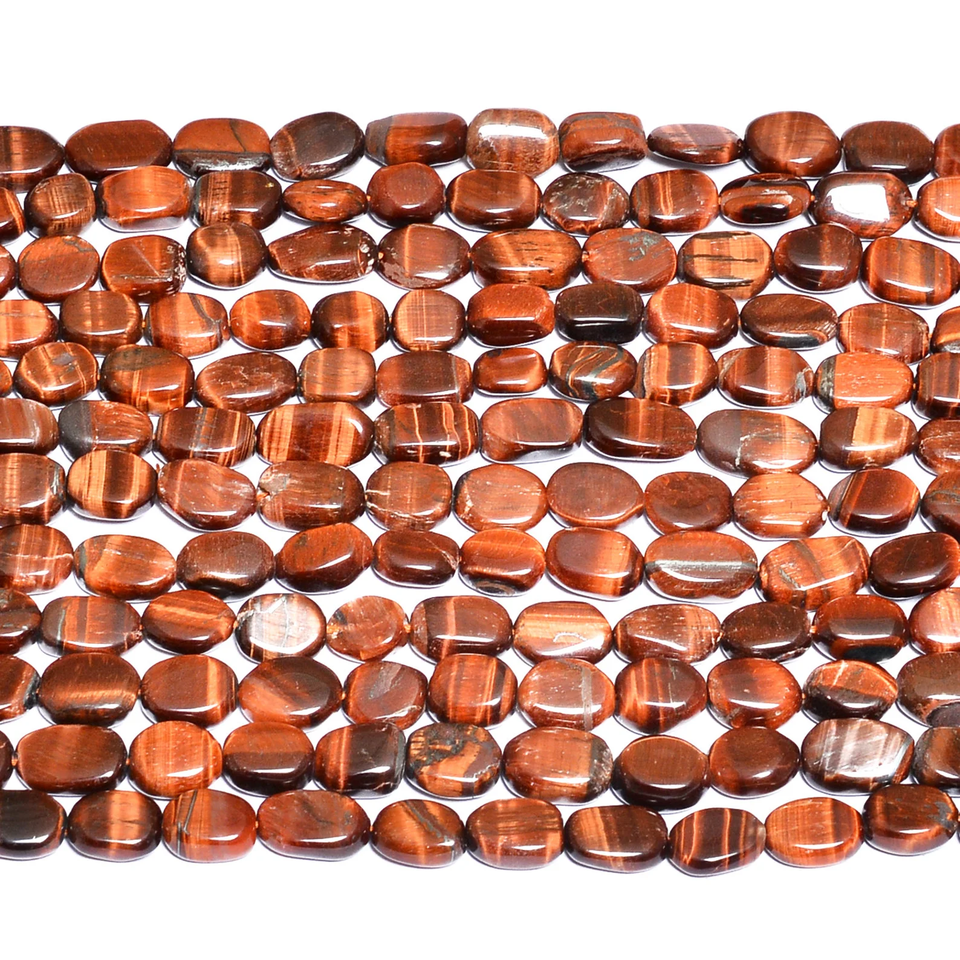 ไทเกอร์อายแบบแบนราบ8มม.-10มม. ลูกปัดนักเก็ตทรงรีเสือสีแดงธรรมชาติพลอยสังเคราะห์รูปไข่ลูกปัดแฟนซีสำหรับทำเครื่องประดับ
