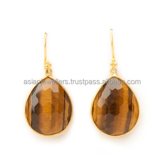 ต่างหูพลอยตาเสือ925เครื่องประดับแบบห้อยทำมือชุบทองทำด้วยมือ