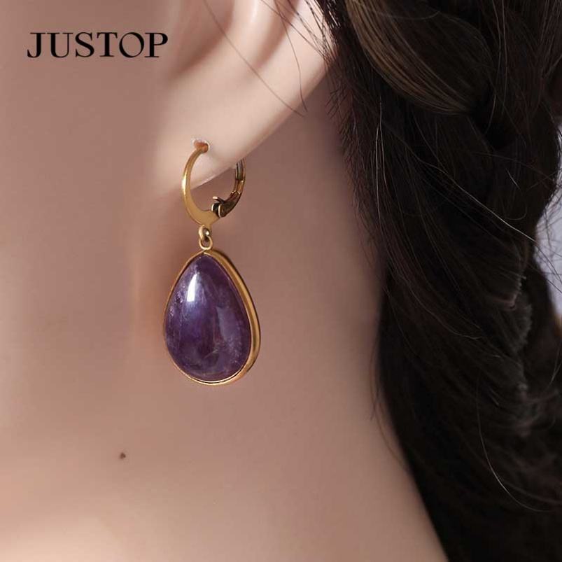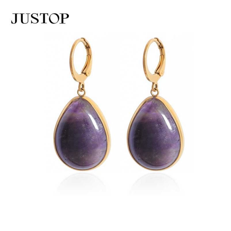 Justop ต่างหูห้อยจี้สเตนเลสชุบทอง18K สำหรับผู้หญิงทันสมัยเหมาะกับงานปาร์ตี้