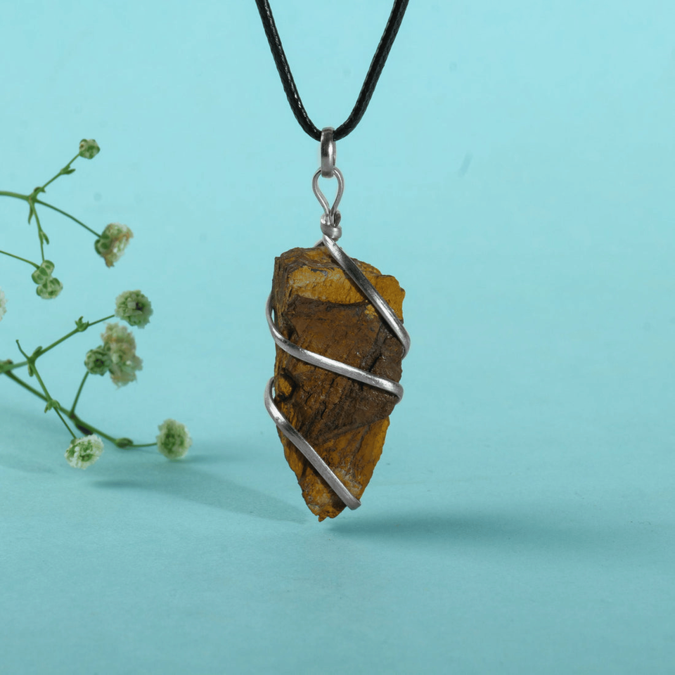 Product name:Tiger Eye Rough Stone Wire Wrapped Pendant