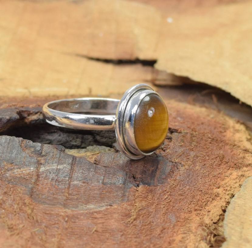 Yellow Tiger Eye Silver Ring