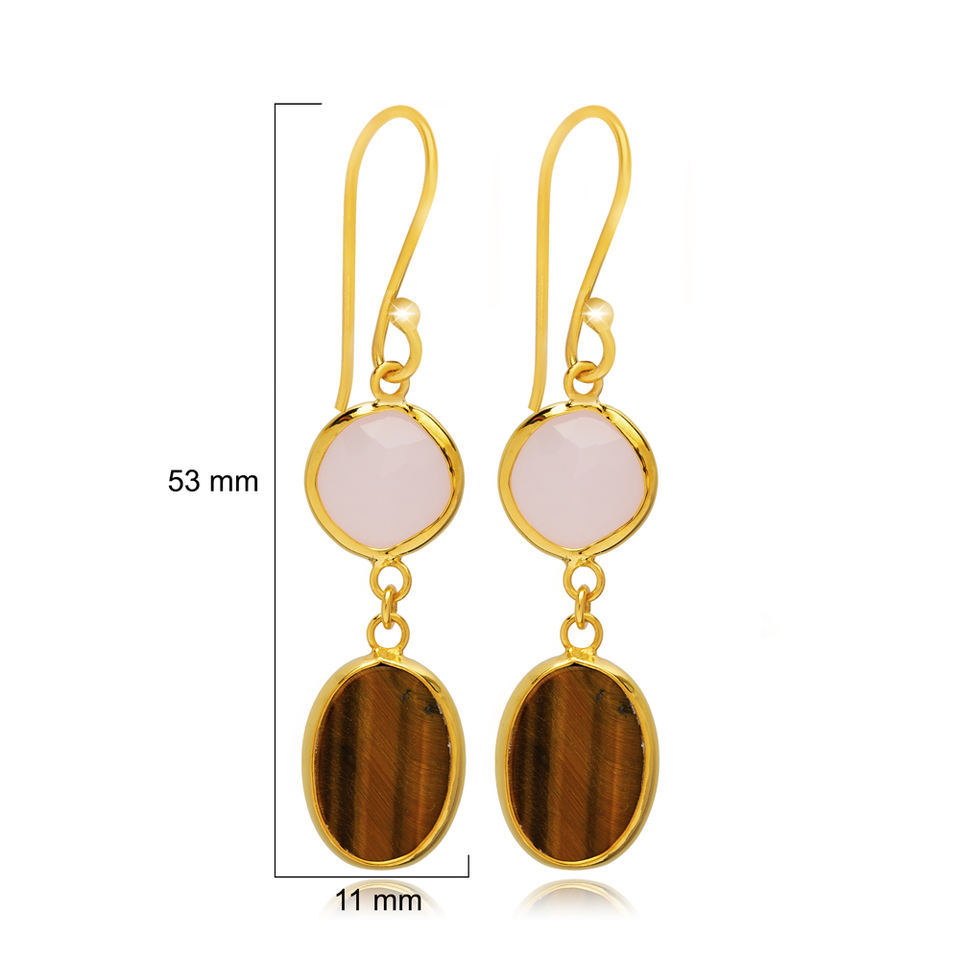 ต่างหูแบบตะขอเกี่ยวกรอบสีทองควอตซ์สีชมพูและ925เครื่องประดับเงินสเตอร์ลิงแบบตุรกี