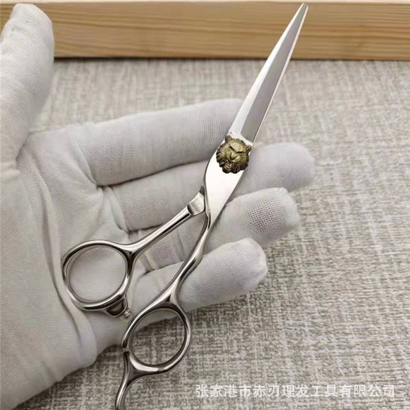 กรรไกรตัดผมไทเกอร์เฮด สแตนเลส 440C หัวตรง สำหรับมืออาชีพ ด้ามจับขนาดกลาง ขัดเงาอย่างดี