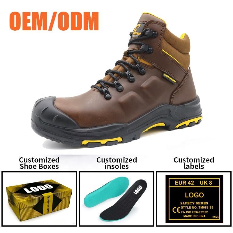รองเท้าบูทนิรภัยอุตสาหกรรม Tiger Master คุณภาพสูง พื้นยางกันลื่น HRO หัวเหล็กไฟเบอร์กลาส ป้องกันการเจาะทะลุ S3 หนังแท้ กันน้ำ