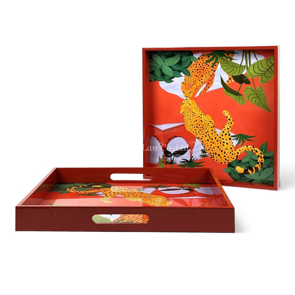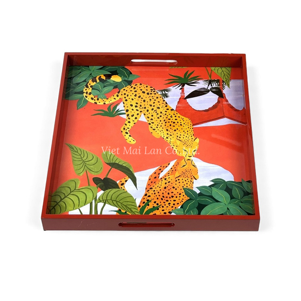 ถาดเคลือบลายเสือ งานแฮนด์เมด ตกแต่งด้วยลายเสือ สำหรับเสิร์ฟอาหาร วางโชว์บนโต๊ะ และตกแต่งบ้าน จากเวียดนาม