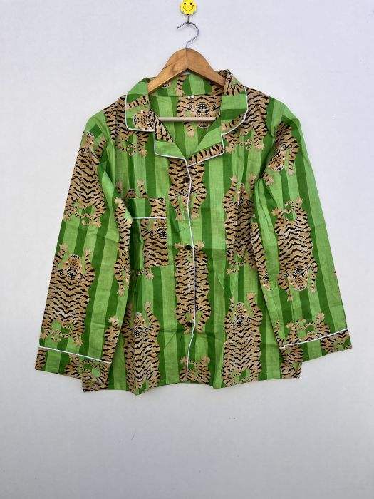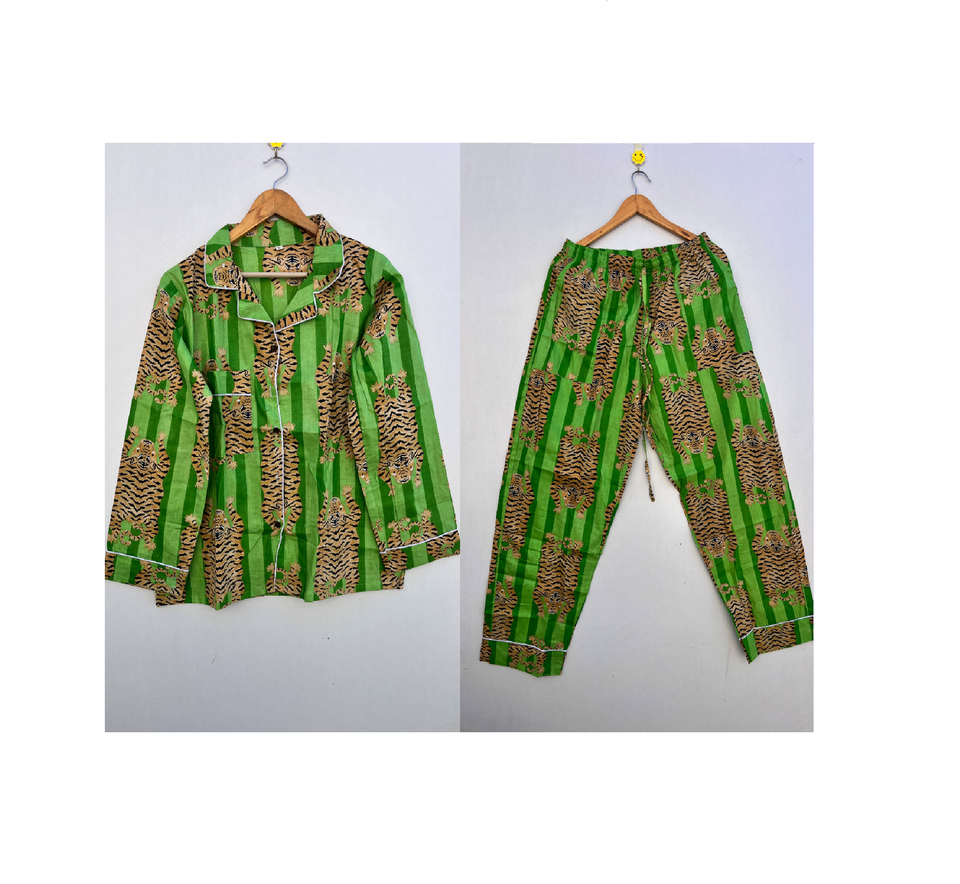 ชุดนอนผ้าคอตตอนเนื้อนุ่มพิมพ์ลายเสือสูทสำหรับผู้ใหญ่สำหรับงานปาร์ตี้เจ้าสาวหรือชุดนอนฤดูร้อนสไตล์ PJ แบบลำลอง