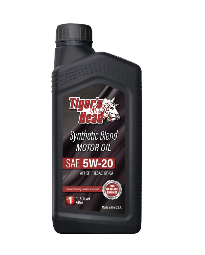 น้ำมันเครื่องสังเคราะห์ผสม Tiger's Head ป้องกันการสึกหรอ SAE 5W-20 สำหรับยานยนต์ บรรจุ 6 ขวด ขนาด 1 ควอร์ต