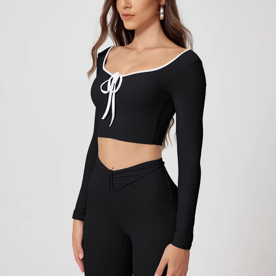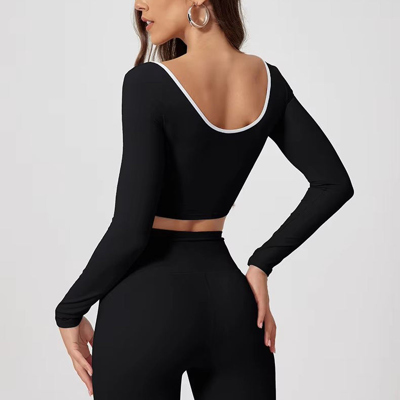 เสื้อยืดครอปฟิตเนสแขนยาวสำหรับผู้หญิงชุดเล่นกีฬารัดรูปกางเกงฟิตเนส