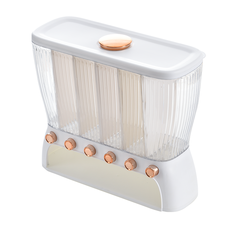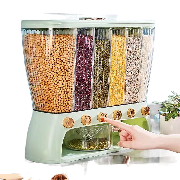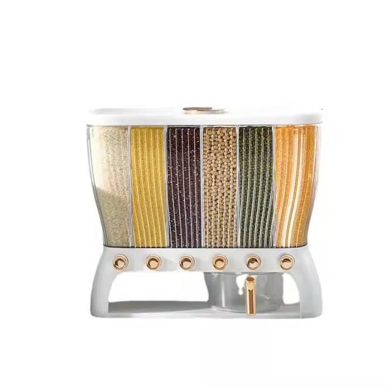 TikTok Hot Sell 6 Grids Plastic Storage Box Dry Food Dispenser for Kitchen Storage-Grain Rice Open Lids Cereal Seal Pot