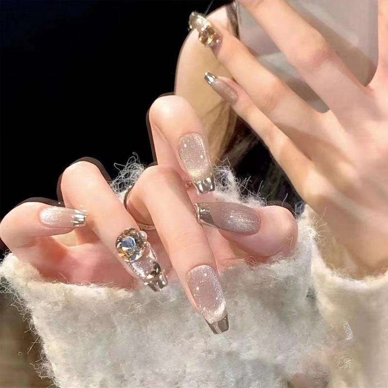 TikTok เล็บแบบสวมใส่ทำด้วยมือขายดีสติ๊กเกอร์ติดเล็บปลอมไข่มุกฝรั่งเศสปลายแมวระดับไฮเอนด์30ชิ้น
