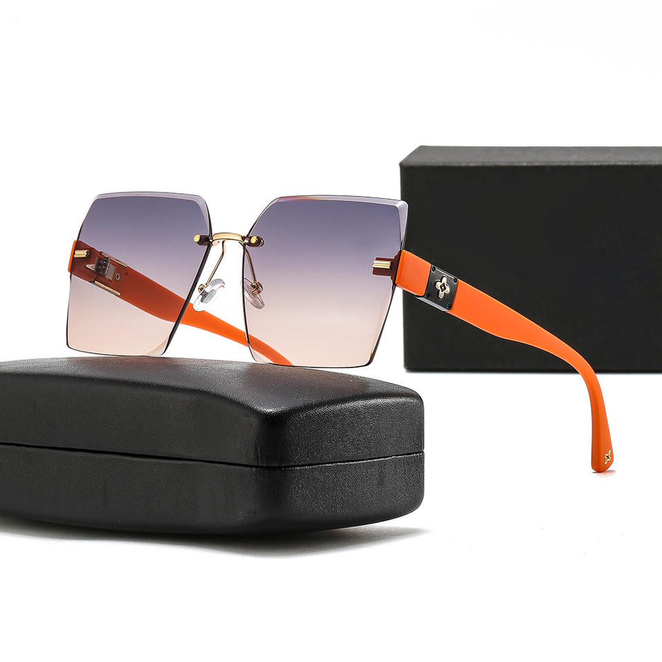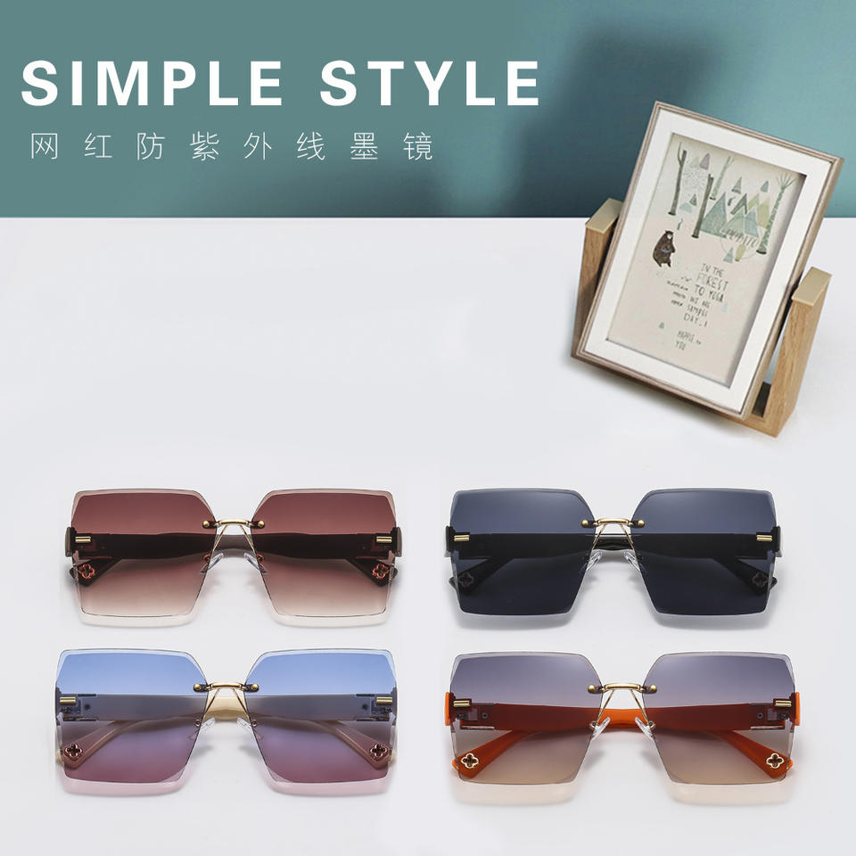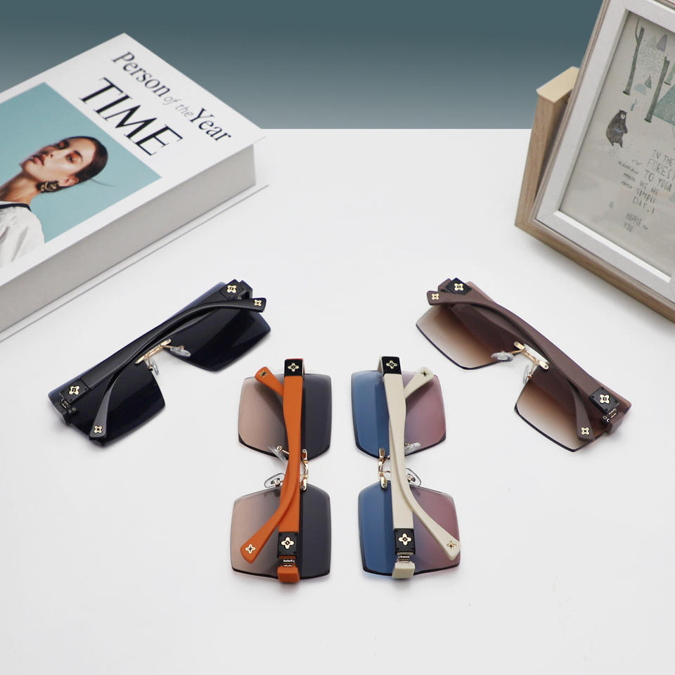 แว่นกันแดดทรงไร้กรอบสำหรับผู้หญิง สไตล์ TikTok ป้องกันรังสียูวี 400 เลนส์ PC แบบที่ 3 สีดำ ดีไซน์ระดับไฮเอนด์
