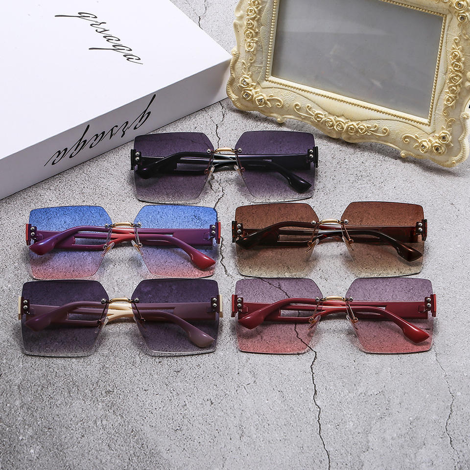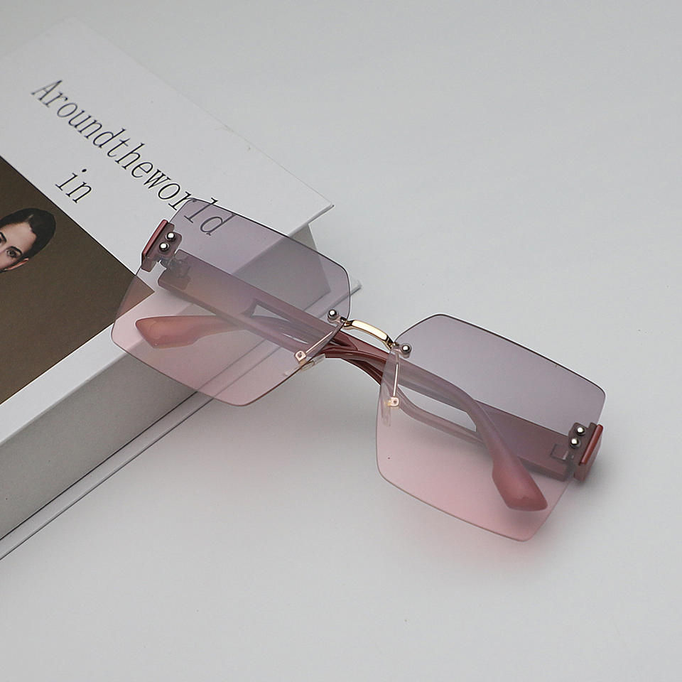 แว่นกันแดดไร้กรอบสำหรับผู้หญิง รุ่น TikTok Trend เลนส์ PC ป้องกันรังสียูวี 400 สีชมพู รุ่น 624