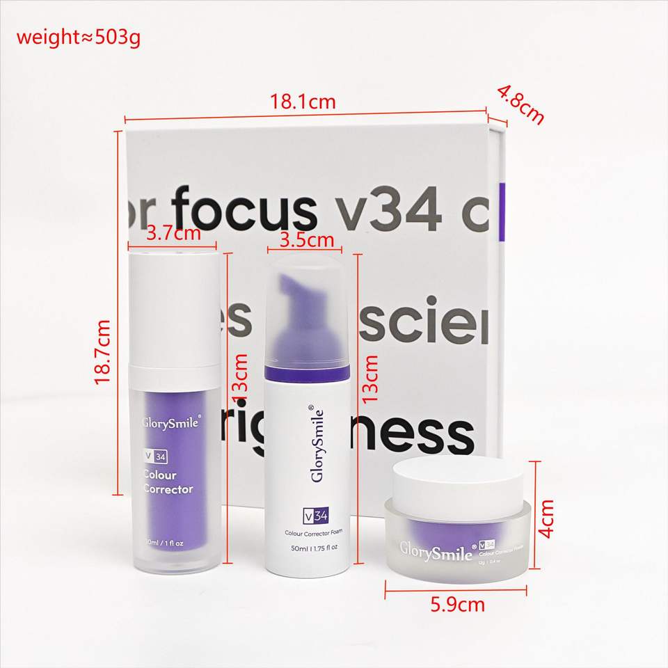 ชุดฟอกสีฟัน V34 คิทเซรั่มโฟมผงสีม่วง ยาสีฟันเพื่อฟันขาวทันที รับผลิตแบรนด์ส่วนตัว OEM