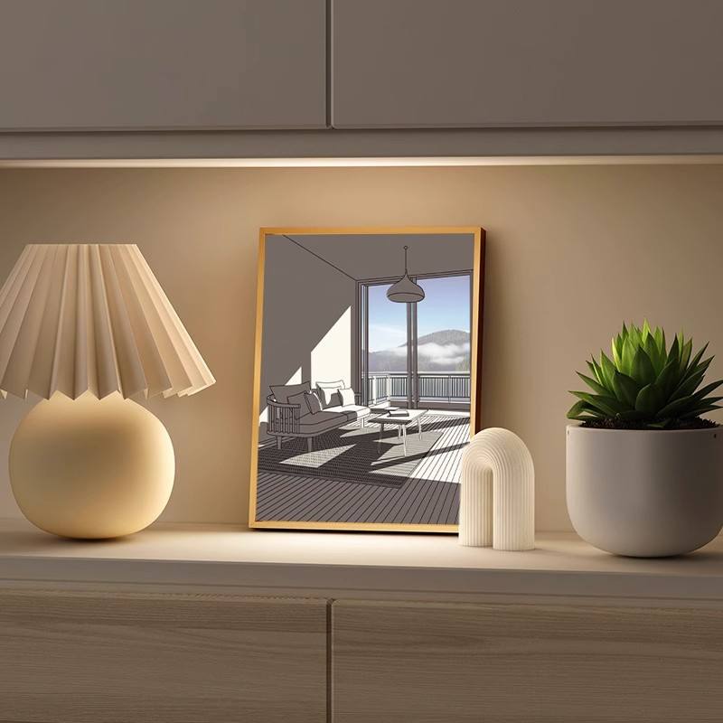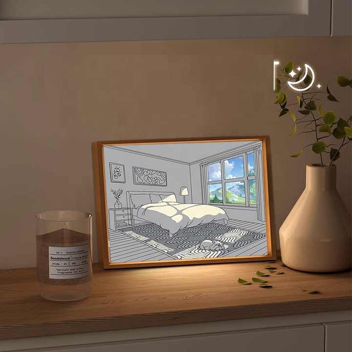 ผ้าใบพิมพ์, ไฟ LED, กรอบด้านในทำจากไม้สน
