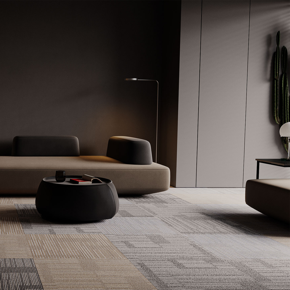 พรมกระเบื้องคุณภาพสูงสำหรับสำนักงาน ปูพื้นแบบโมดูลาร์ ราคาประหยัด สำหรับเชิงพาณิชย์ ฐานพีวีซีกันลื่น เป็นมิตรกับสิ่งแวดล้อม เหมาะสำหรับโรงแรมและห้องนั่งเล่น