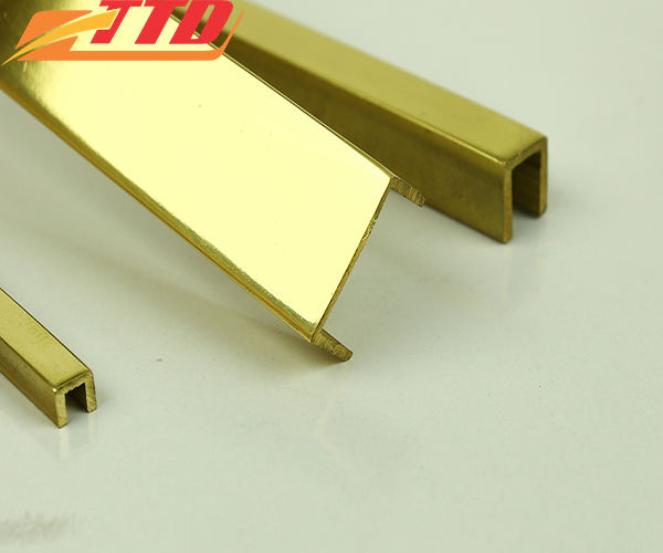 ขอบกระเบื้องโลหะหรูหราสีทองแบบโบราณขอบรูปตัว L สำหรับตกแต่งภายในบ้าน